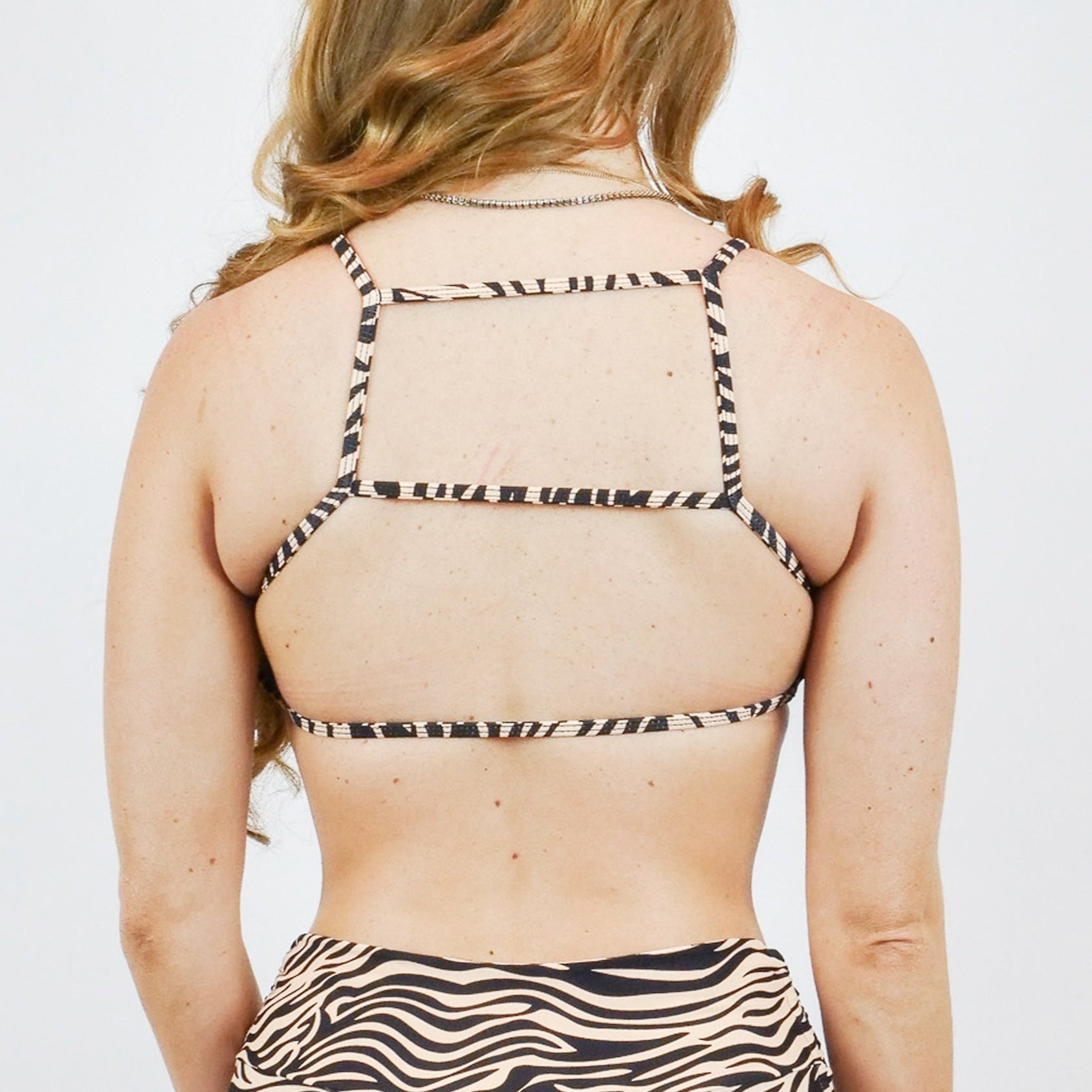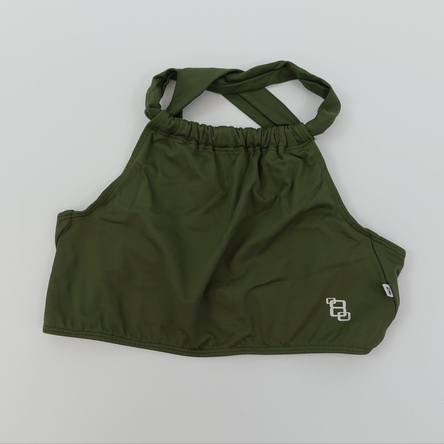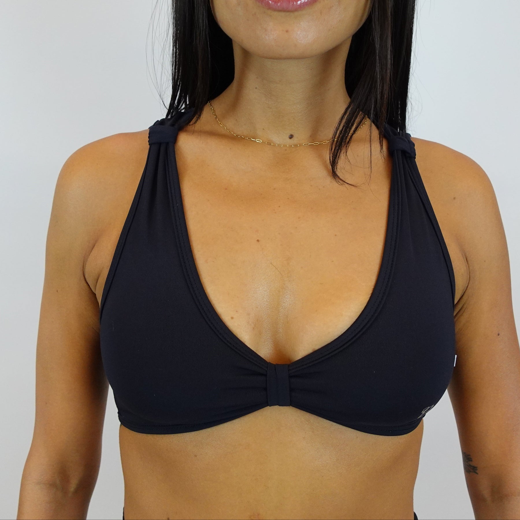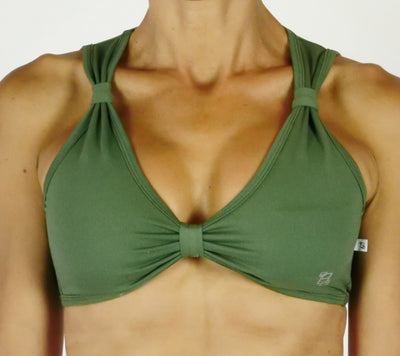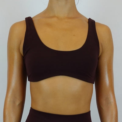 The crossback feature of this top offers ample support with its wide lower hem elastic, full coverage front and combination thick/thin coverage in back.