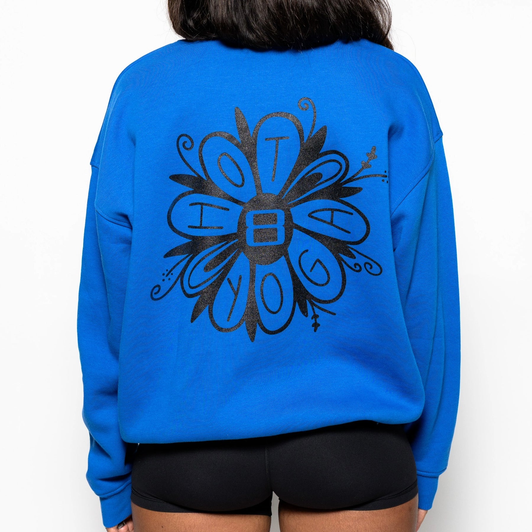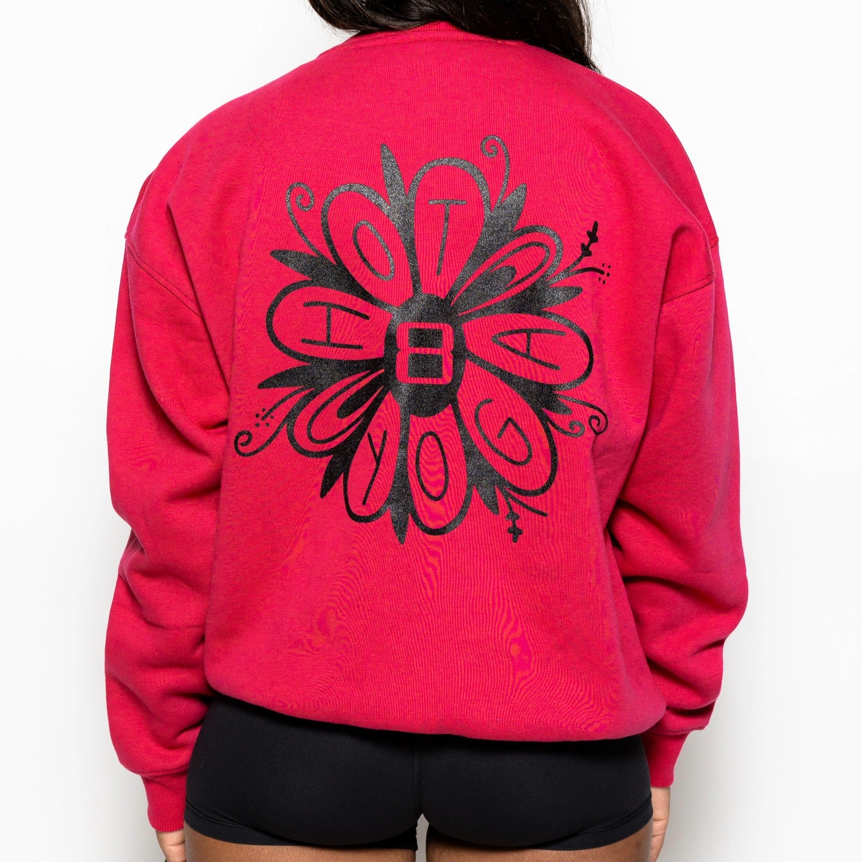 An oversized sweatshirt with a floral Hot 8 graphic across the back.
