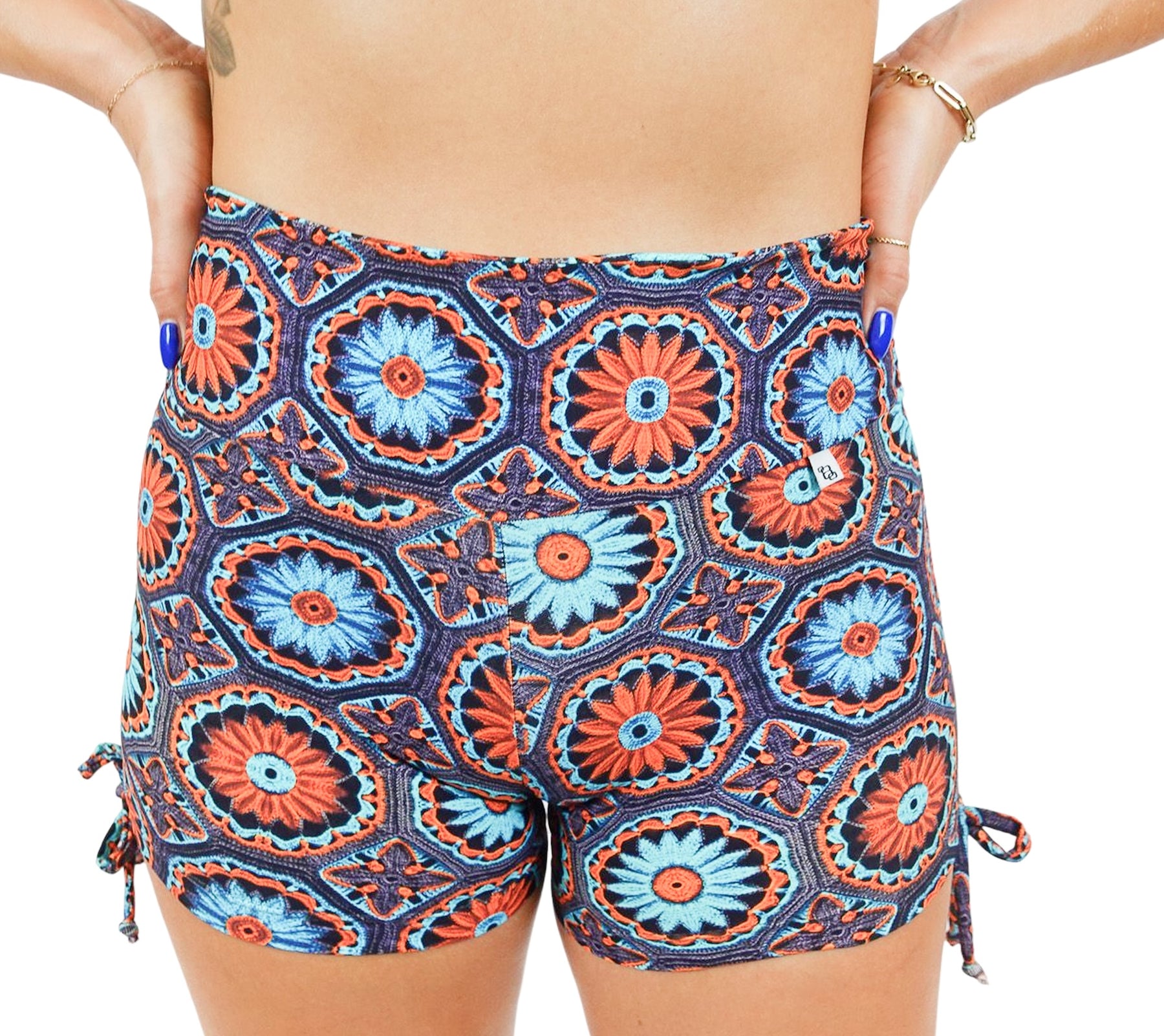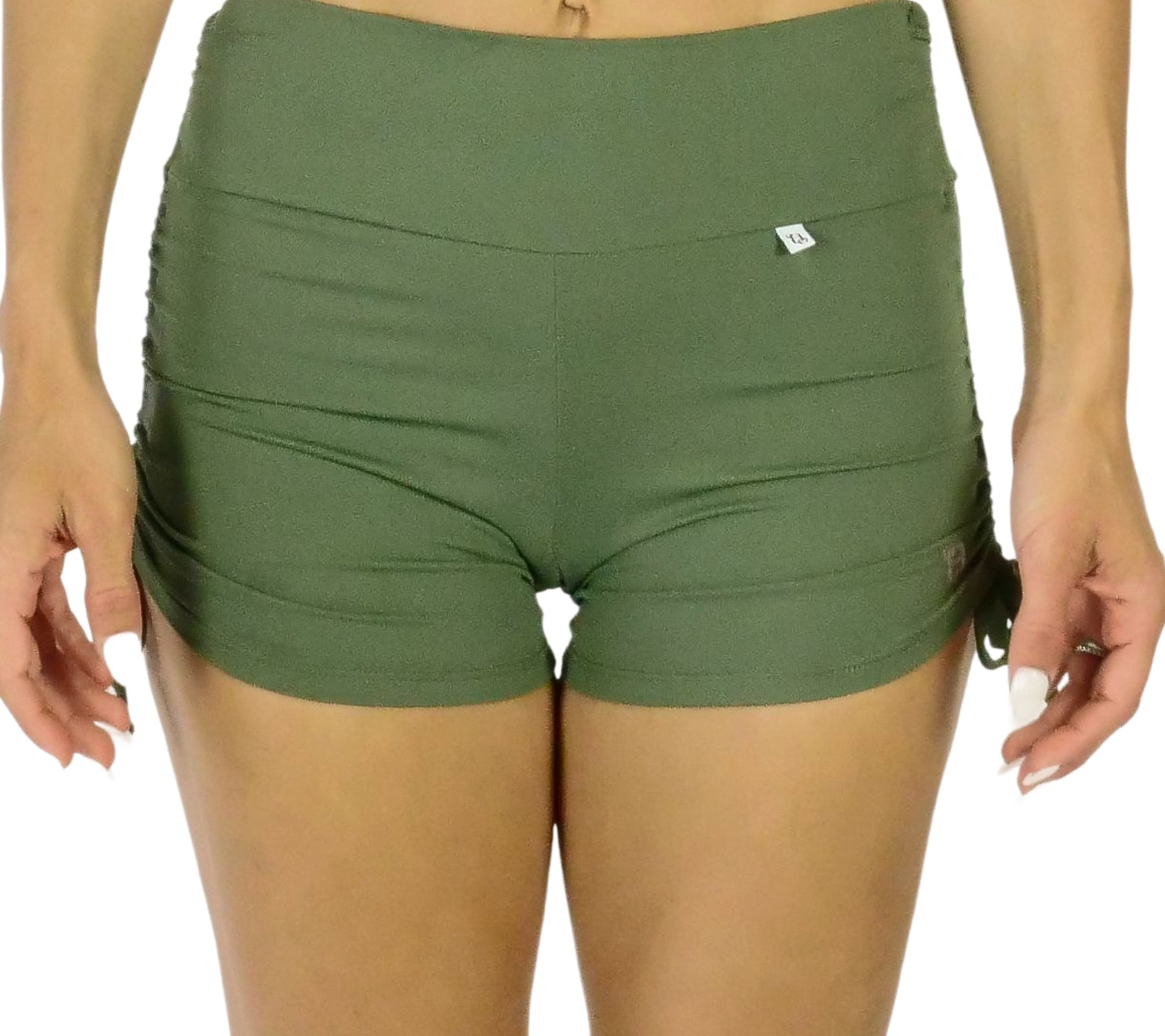 These side tying shorts are made with comfort and style at the forefront. The high waist on these provides a flattering fit while holding you in and keeping you comfortable. The side strings allow you to adjust the look to your liking.